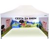 Of het nu een kleine tent van 2x2 m is of een grote reclame tent van 4x8 m, we printen op deze tenten met kleurige afbeeldingen, grafische elementen of bedekken het volledige oppervlak van de reclame tent met een ontwerp naar keuze.