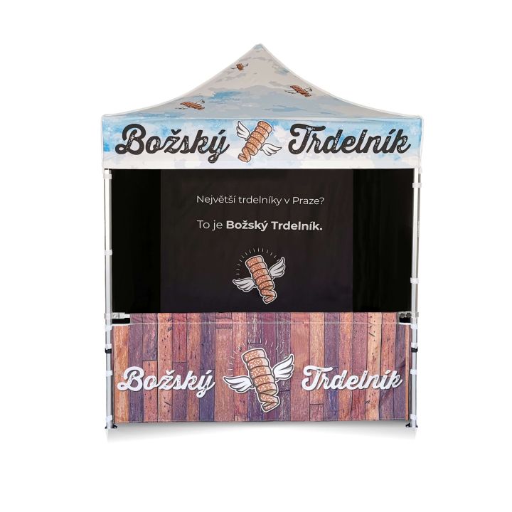 Grafische bestanden voor printen moeten in de beste kwaliteit worden verzonden naar ons bevestigings-e-mailadres dat je ontvangt na het plaatsen van je bestelling. Als het bestand groter is dan 25 MB, gebruik dan een cloudservice. Op basis van de verzonden bestanden maken we een 2D-visualisatie die we naar je sturen voor goedkeuring. Als je je eigen visualisatie wilt maken, kun je de sjabloon vinden in de vierde regel van de tekst na het selecteren van de tentmaat. Door op de link te klikken word je doorgestuurd naar de sjabloon. Op deze manier kun je sneller je idee benaderen en de 2D-visualisatie en levering van de volledige bestelling versnellen.
