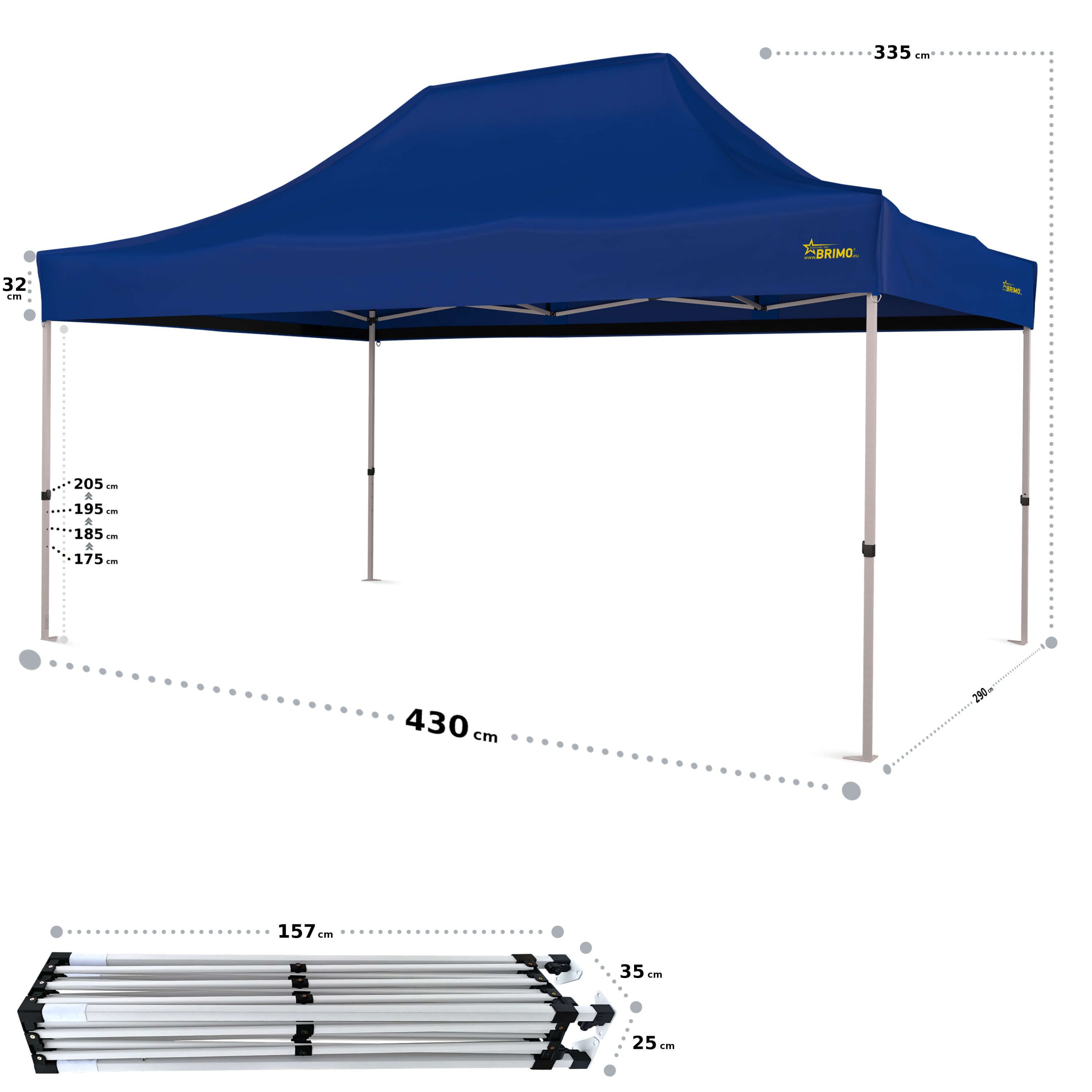 - Dakmateriaal: 100% waterdichte polyesterstof, scheurbestendig, gecoat met een PVC-laag, UV-bestendig (330 g/m²)