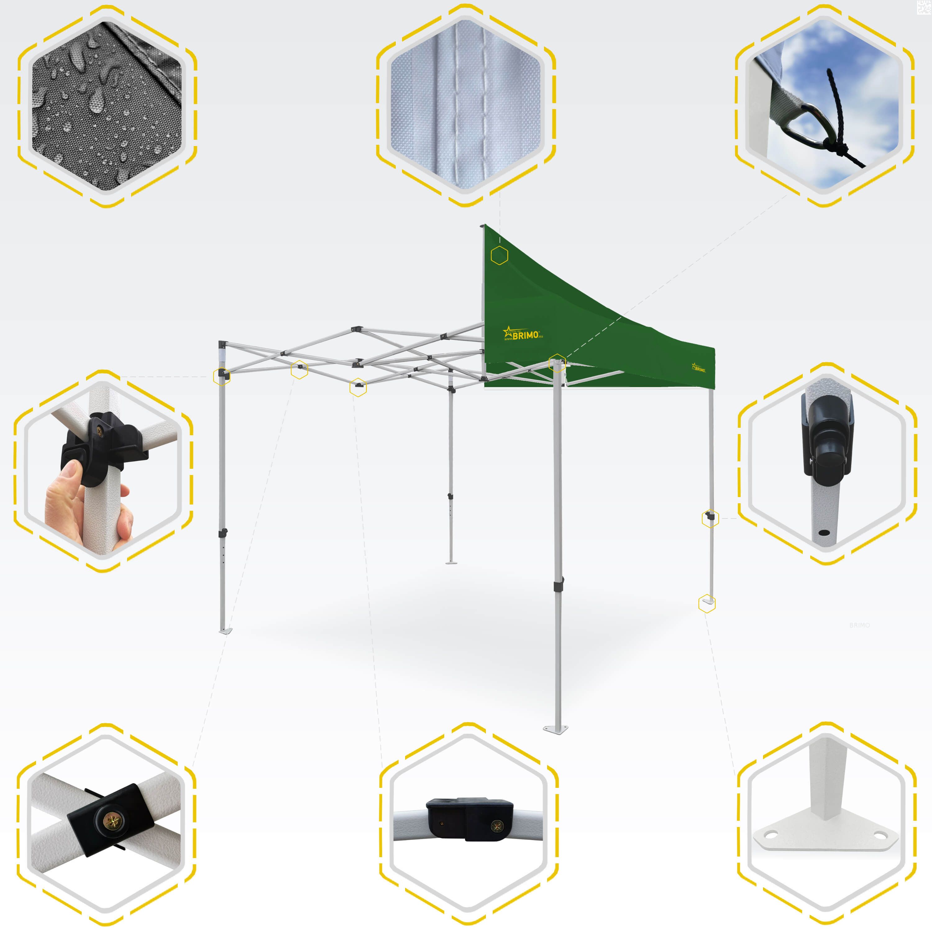 - Het eenvoudige montagesysteem van de easy up partytent maakt het mogelijk om de tent snel op te zetten en af te breken in minder dan één minuut.